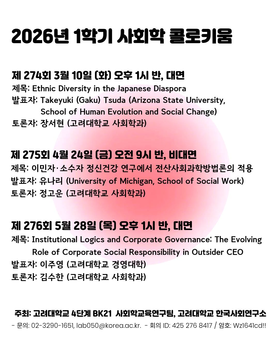 2026년 1학기 사회학 콜로키움에 많은 관심 부탁드립니다.